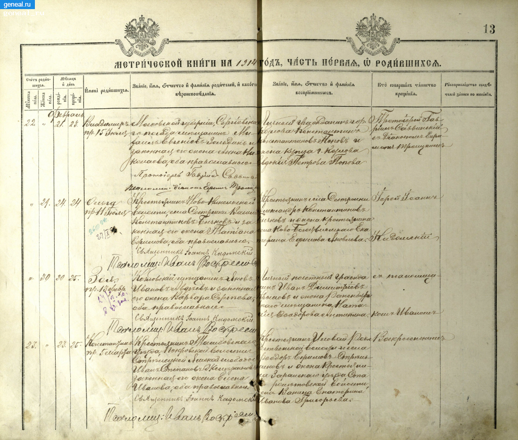 Дата рождения - 21 февраля 1914, дата крещения - 23 февраля 1914